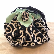 伝統的な唐草模様を花巾着に。