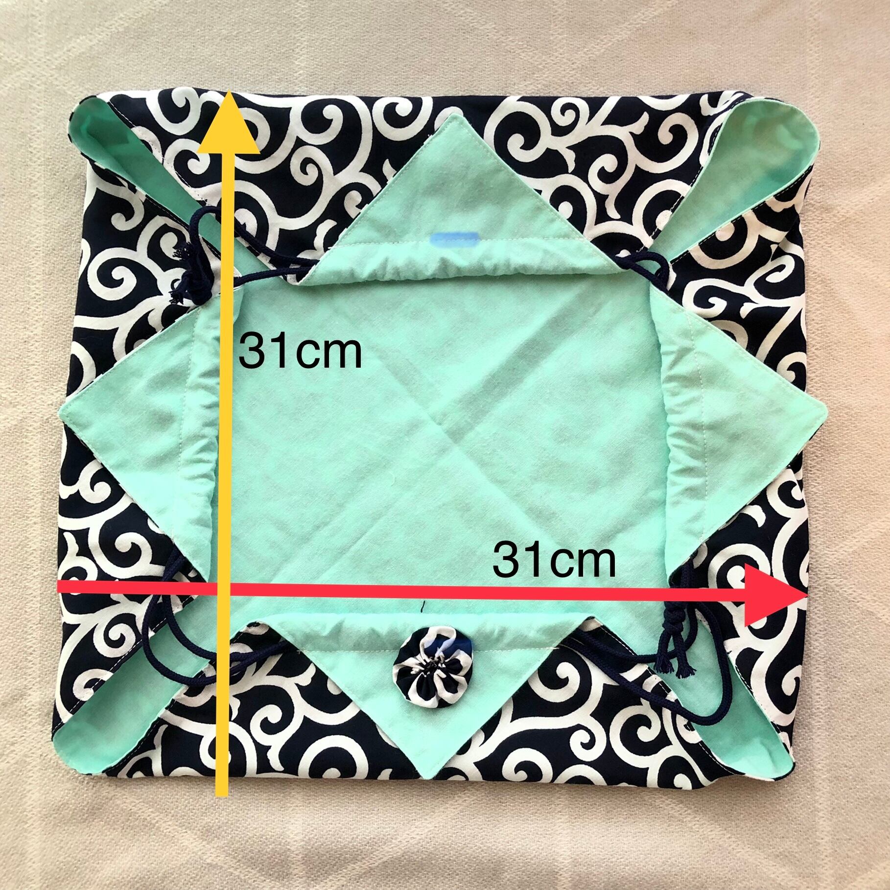 サイズ:31cm×31㎝ (紐を解いた状態)