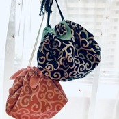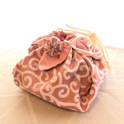 伝統的な唐草模様を花巾着に。