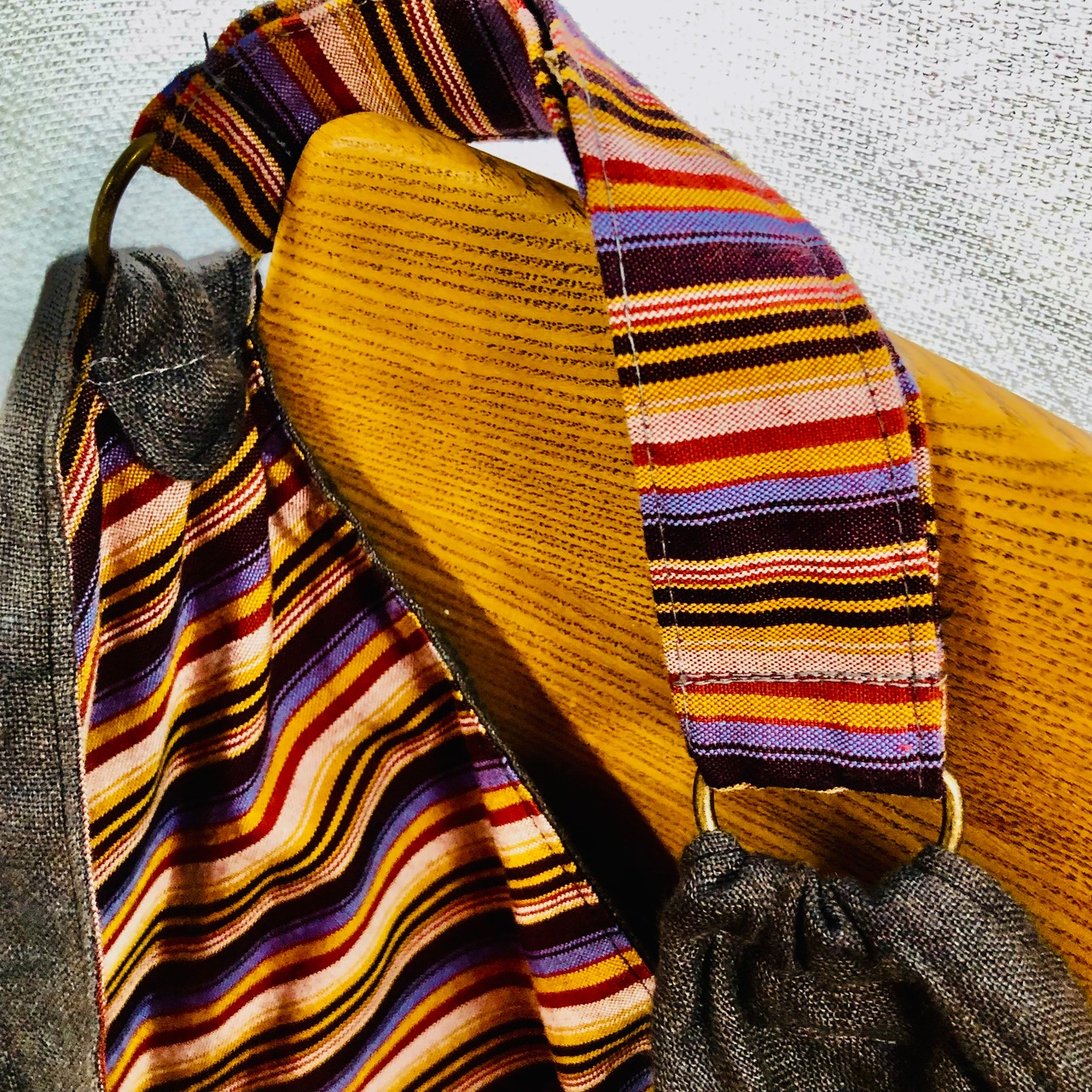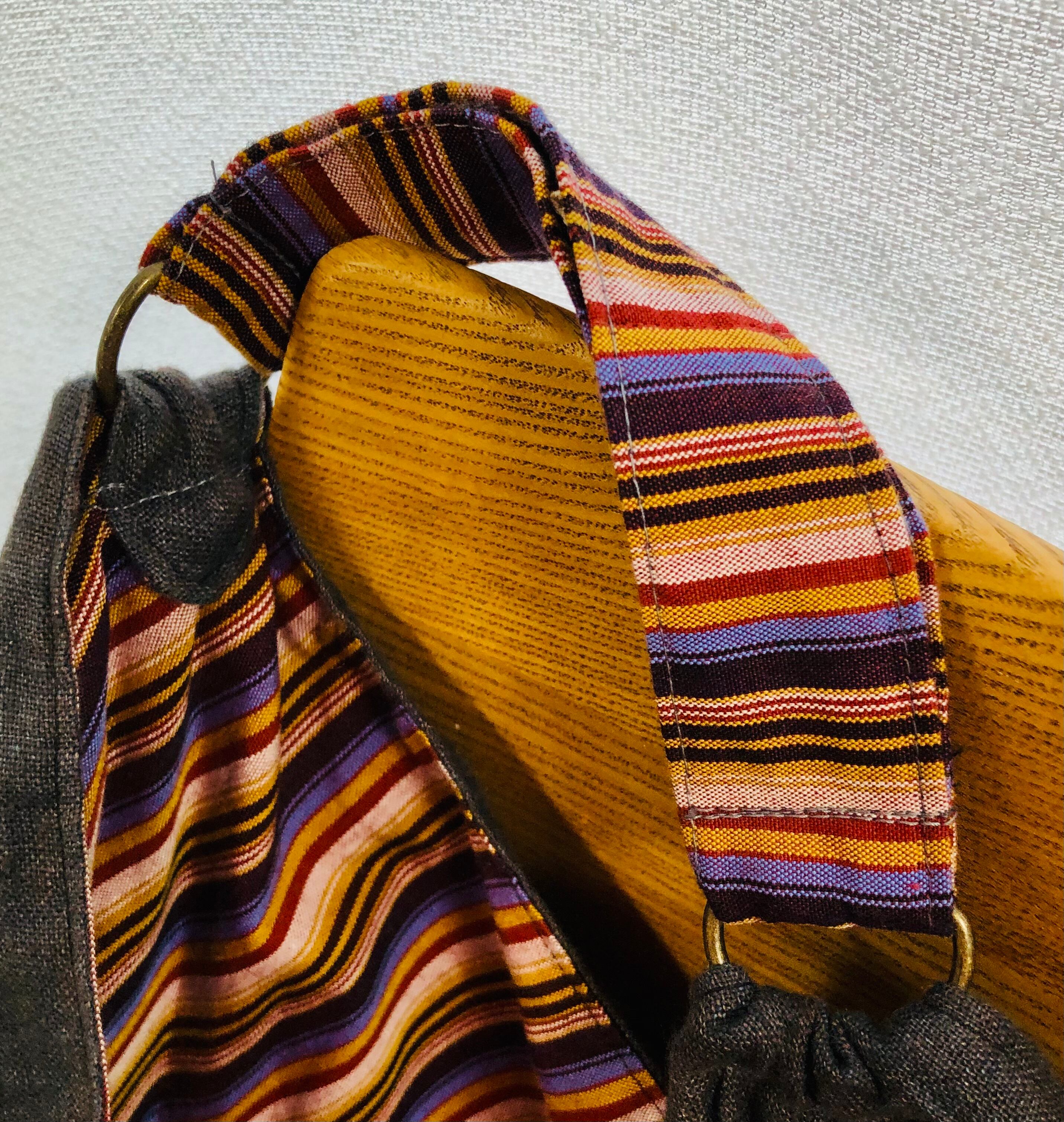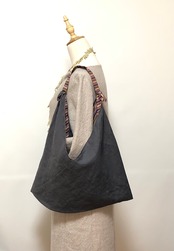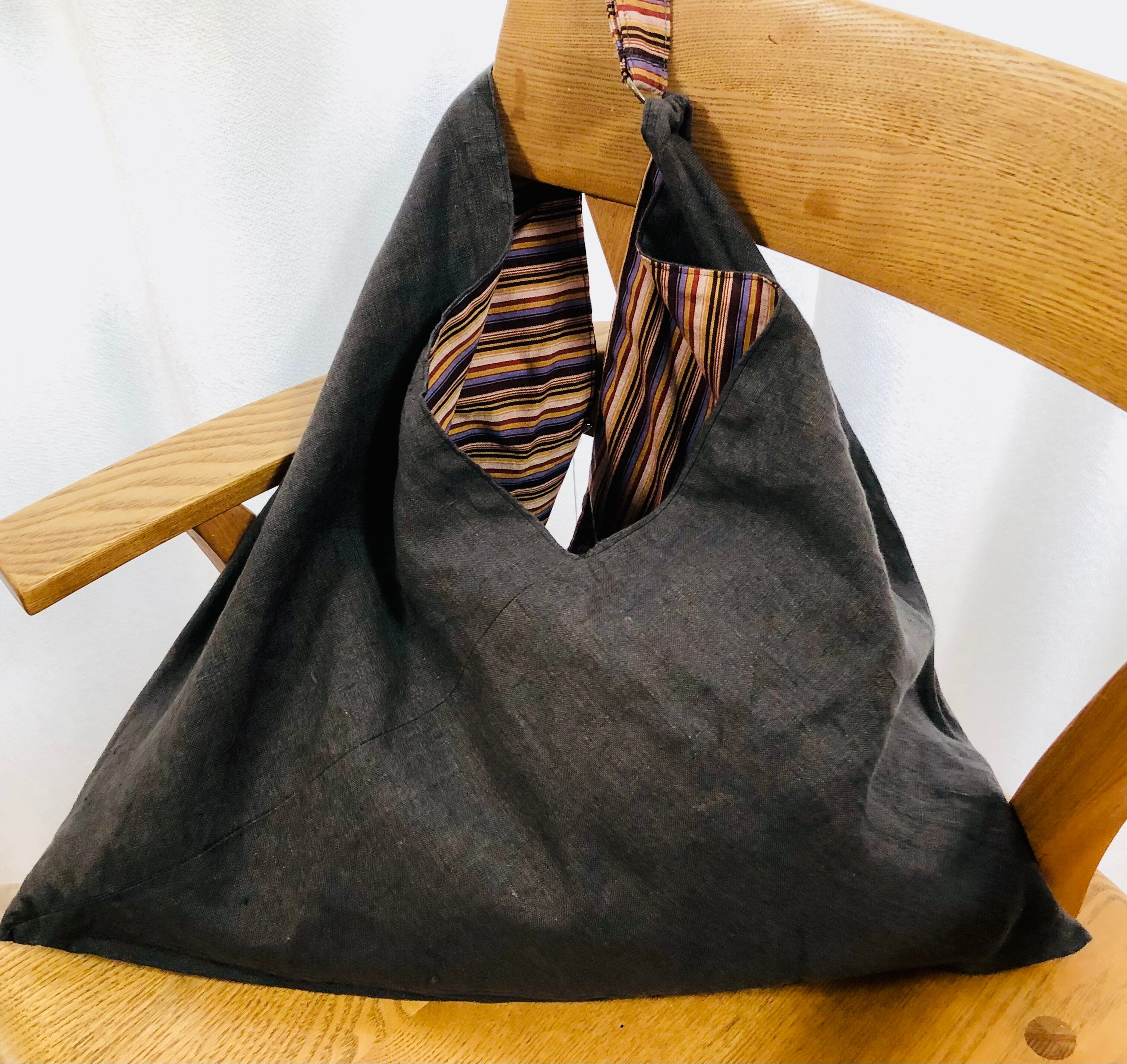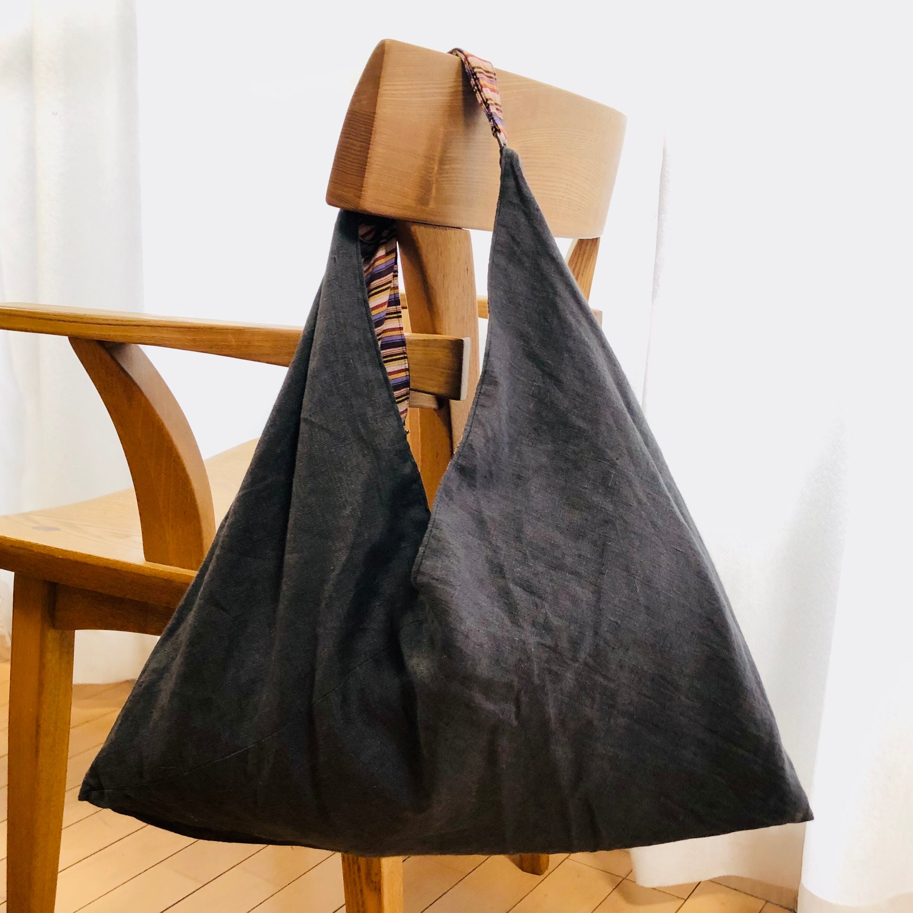 リトアニアリネンと三河木綿を袷仕立てにしたあづま袋です。