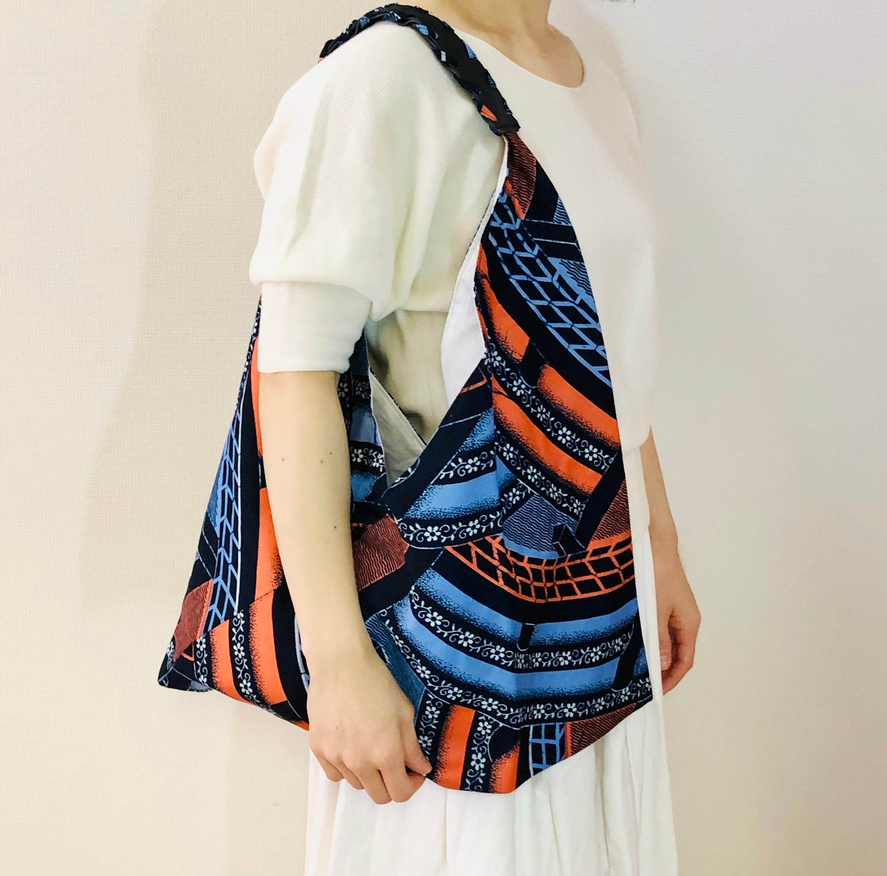 アフリカンバティックで作ったあづま袋。